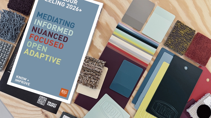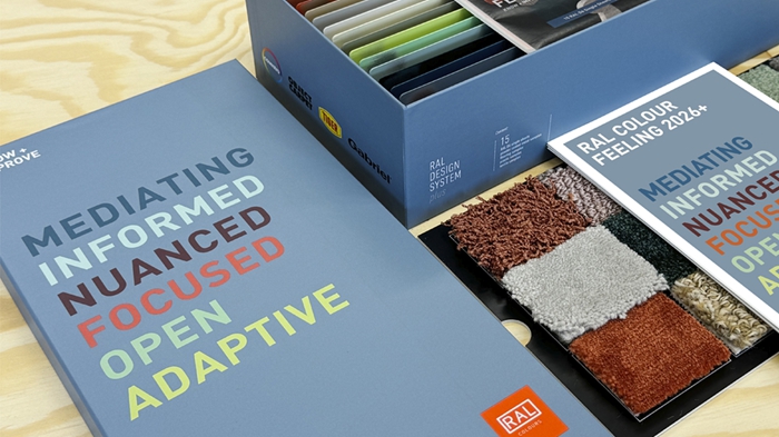 The colour shades of the material samples reflect the trend colours of the new RAL COLOUR FEELING 2026+. The RAL DESIGNSYSTEM plus is the source of the 15 colour shades. This enables harmonious combinations that are relevant and expandable in the long term. Thus, five colour shades from the previous year were retained to complement existing design elements and facilitate further development.
